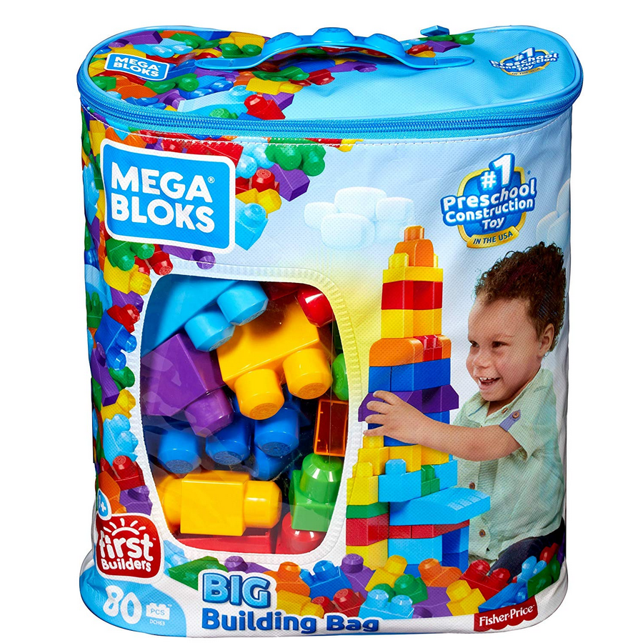 Build and stack for limitless fun with the award-winning Big Building Bag by Mega Bloks. These bright primary-colored blocks encourage hands-on exploration as children imagine and create. Building blocks are big and easy for little fingers to assemble. When playtime is over, zip the blocks up in an environmental-friendly bag and stash them in the toy box until the next adventure. Ideal for ages one and up!